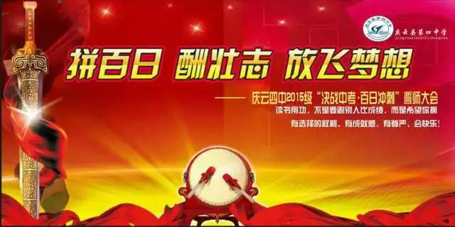 伴随着雄壮的国歌声,庆云四中2015级“决战中考·百日冲刺”誓师大会拉开了帷幕。优秀学生代表吴瑞首先发言,她以青春的名义,以充满感恩、豪情的语言号召大家要“用最认真的态度和用最自信的微笑去迎接中考的挑战”。吴瑞同学的发言点燃了全场的气氛,每个班级纷纷进行了宣誓,大声喊出属于自己班的中考冲刺誓言。