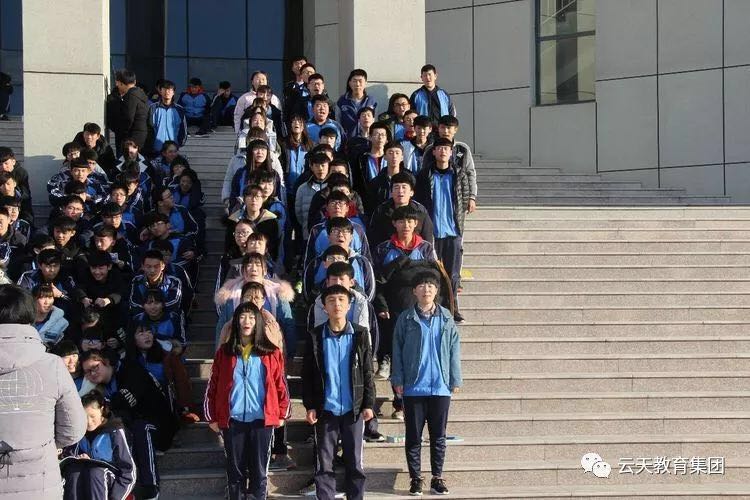 高二年级21个班的学生齐声喊出口号,响彻天际。