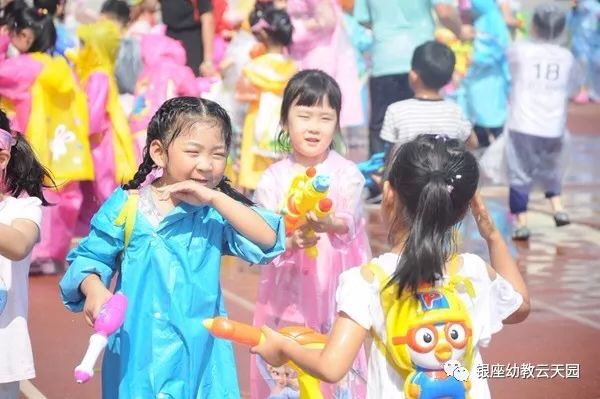 喜欢玩水是孩子的天性,每一个孩子都会把水玩出很多的花样,其中水枪游戏和可以变成泡泡的水,成为了孩子们津津乐道的经典游戏。6月1日,云天幼儿园的孩子们上演了一场别开生面的水枪大战和泡泡大战,孩子们尽情地玩耍、自由地奔跑,在对战中感受着水带给他们的快乐和夏季的凉爽,更让一个个五彩斑斓的泡泡带领孩子们走进梦幻世界。