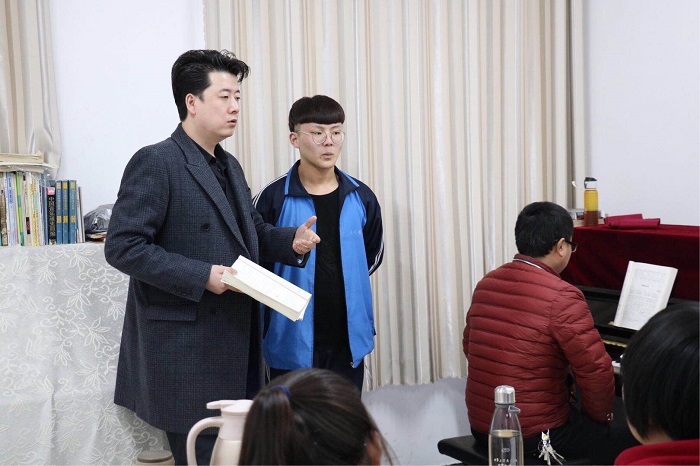 下午,陈冠馥老师和王泽南老师从各位学生发音、气息、口型等基础问题进行逐一指导。他们告诉学生在演唱过程中要情感饱满,节奏要准,演唱的时候要想着气息的运用和情感的表达,而不是机械地唱出音符。随后两位老师现场示范,给学生们上了一堂生动的声乐课,让同学们看到音乐的未来之路在哪里。值得一提的是,两位老师为渤海中专2015级学前教育专业学生进行了春季技能考试考前一对一辅导,鼓励学生以自信的态度面对考试,学生们深受鼓舞和激励。