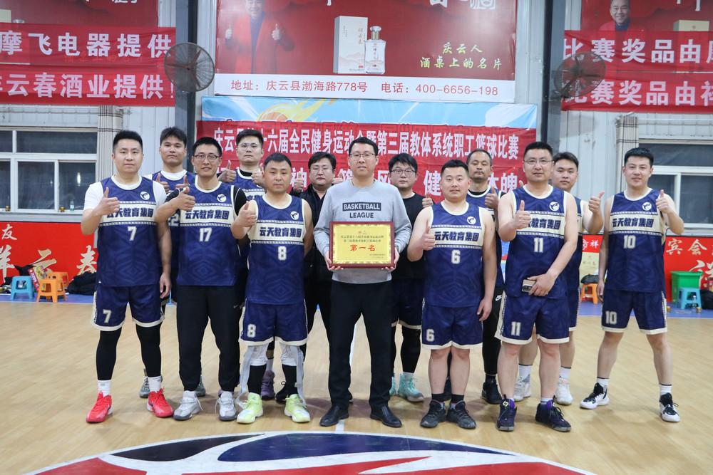 近日,庆云县第十六届全民健身运动会暨第三届教体系统职工篮球赛圆满落幕。在本次赛事中,云天教育集团代表队凭借顽强拼搏的斗志与默契无间的团队协作,以五战全胜的骄人战绩,从13支参赛队伍中脱颖而出,成功摘得本次比赛的冠军桂冠,充分展现了云天教职工昂扬向上的精神风貌与奋勇争先的体育风采。